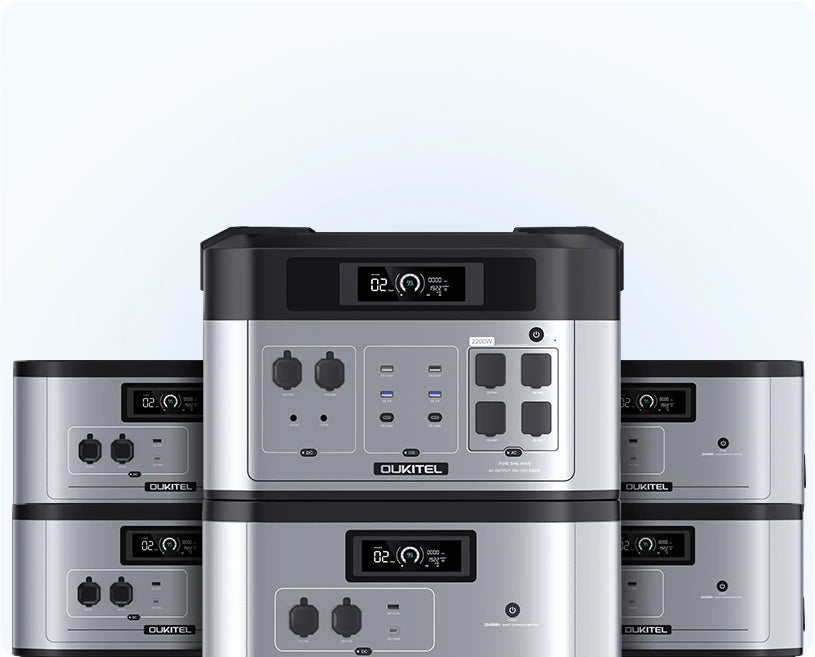 OUKITEL BP2000 with up to 7 x B2000 expansion batteries in parallel to reach 16kWh, and meet the family's power need for 1-6 days. The robust structural design ensures stability and worry-free usage.